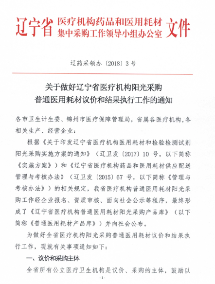 關于做好遼寧省醫(yī)療機構陽光采購普通醫(yī)用耗材議價和結果執(zhí)行工作的通知