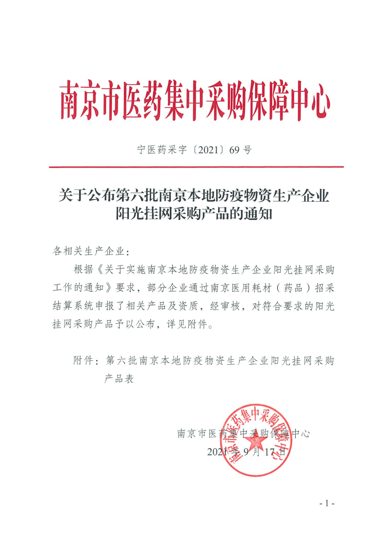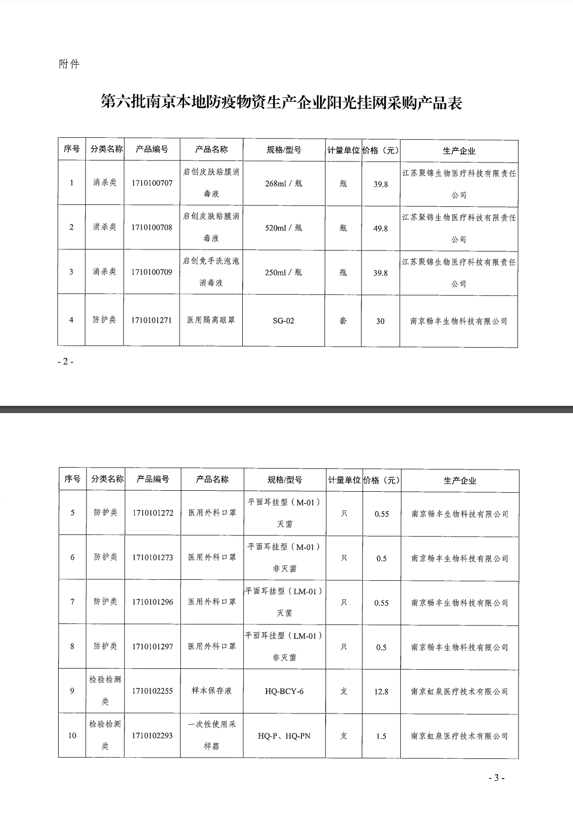 關(guān)于公布第六批江蘇省南京本地防疫物資生產(chǎn)企業(yè)陽光掛網(wǎng)采購產(chǎn)品的通知