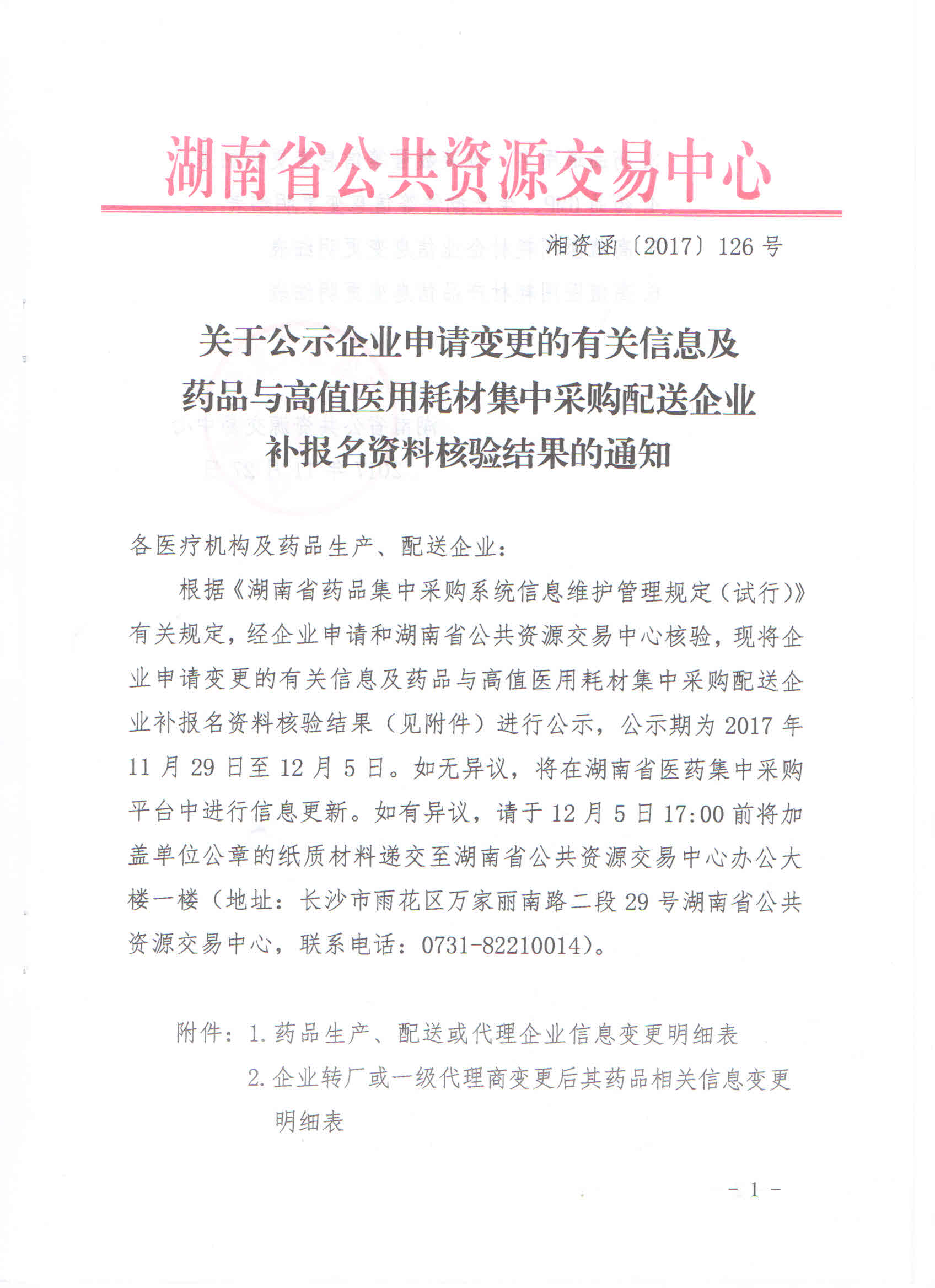 湖南省關(guān)于公示企業(yè)申請(qǐng)變更的有關(guān)信息及藥品與高值醫(yī)用耗材集中采購(gòu)配送企業(yè)補(bǔ)報(bào)名資料核驗(yàn)結(jié)果的通知